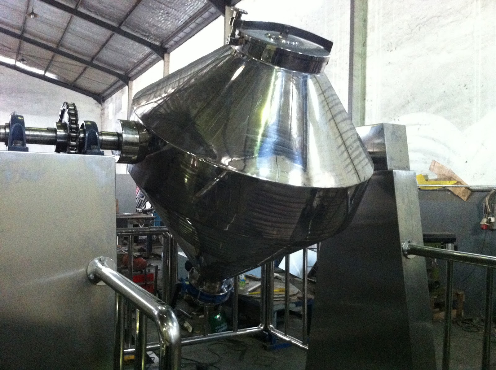 Mesin Double Cone Mixer berfungsi sebagai mesin untuk megaduk 2-3 macam campuran bahan makanan, minuman, jamu, rempah-rempah dan obat-obatan yang berbentuk serbuk/tepung (powder) atau granuld (produk kering)